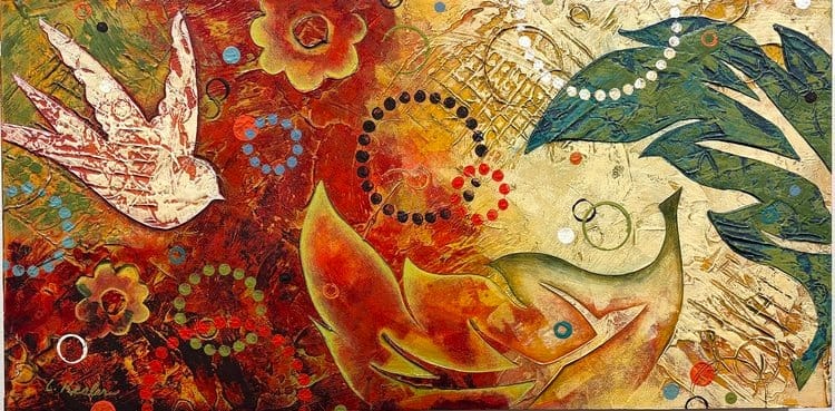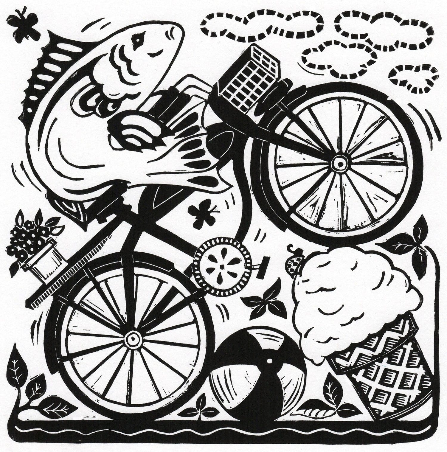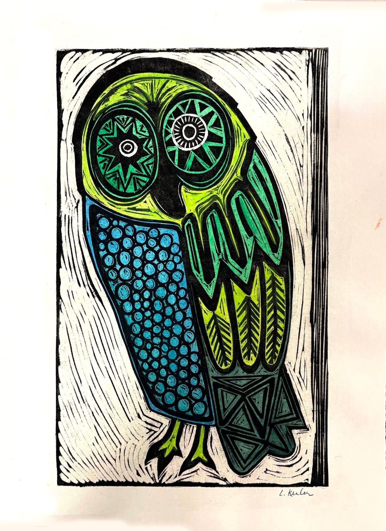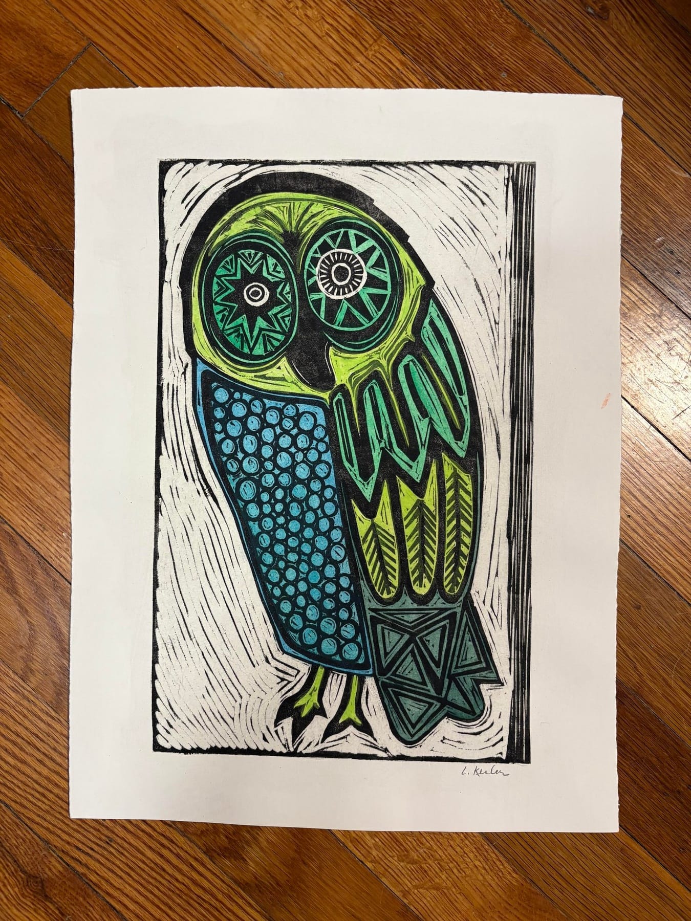 I make original linoleum block prints, monoprints, paintings, and mixed media art.
